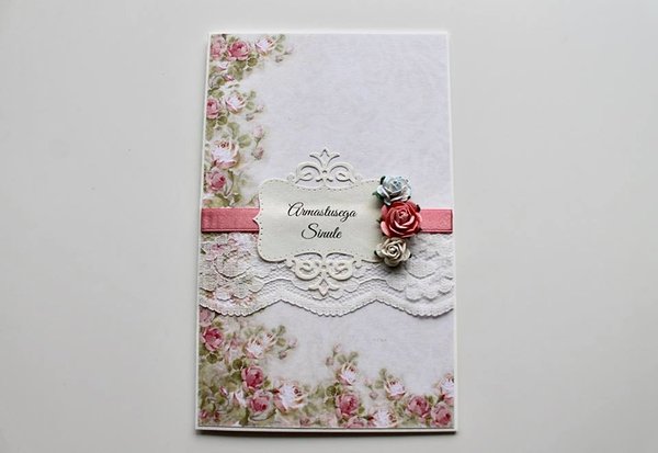 Kahepoolne romantiline käsitöökaart, komplekti kuulub ümbrik.
