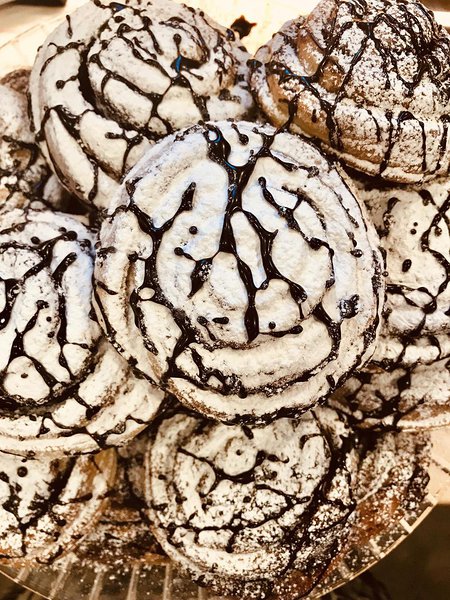Puhveti legendaarsed šokolaadi rullid, mis sisaldavad šokolaadi rohkem kui küll! Šokohoolikutele pakume katteks šokolaadipumatit pärlsuhkruga või veidi tagasihoidlikuma maitse eelistajatele klassikalist tuhksuhkru puistet.Saiakeste minimaalne tellimus on kümme tükki.Puhveti pagarid paluvad oma soovidest ette teatada kaks tööpäeva,nii tagame sulle värsked ja suussulavad saiakesed!